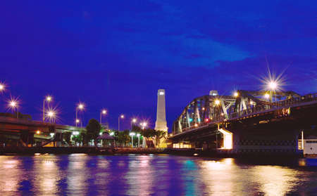 The Memorial Bridge in Bangkok Evening with dark blue sky