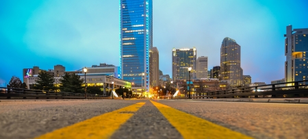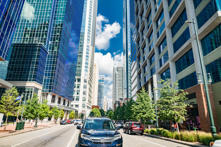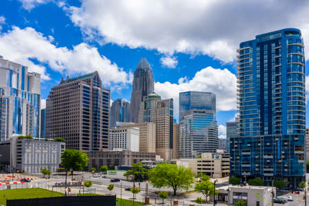 skyline and city streets of charlotte north carolina usa