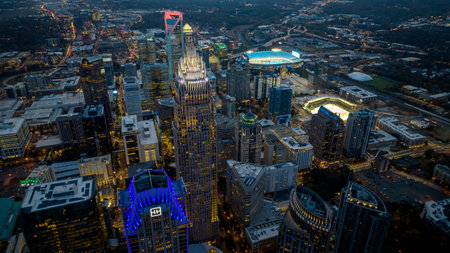 Aerial view of the Queen City, Charlotte, North Carolina at night