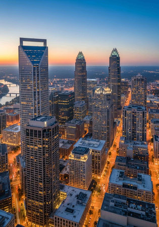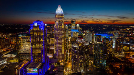 sun setting over charlotte north carolina a major metropolitan city in the south