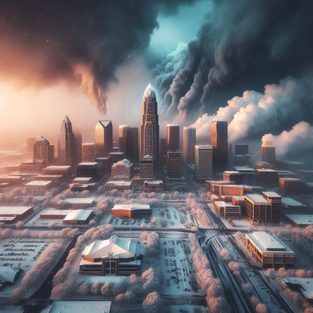 charlotte north carolina city skyline after winted storm