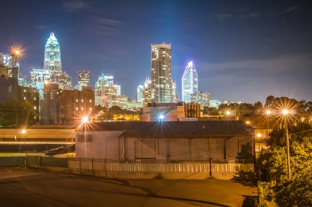 Charlotte City Skyline and architecture at night and milling factory