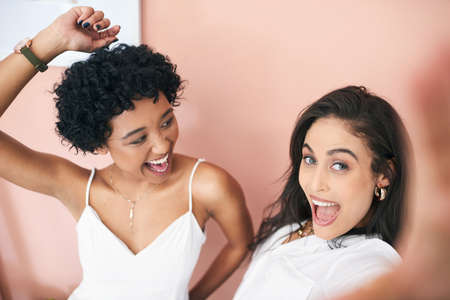 Show us some love. Cropped shot of two young women taking a selfie together.