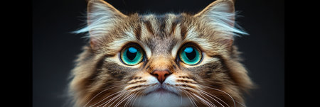 Stunning Ragamuffin Cat Portrait Featuring Bright Blue Eyes and Luxurious Fur on a Dark Background