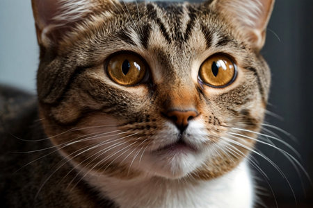 Digital image of tabby cat is looking into a camera, high quality, high resolution