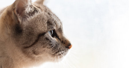 Profile of a cute cat gazing at you Siamese tabby cat