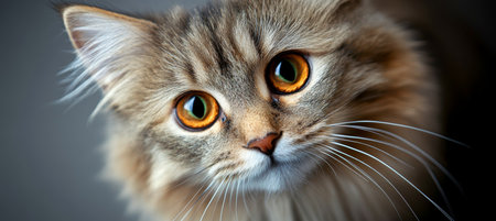 Gray cat portrait on dark background. Cute pet. Created with Generative AI