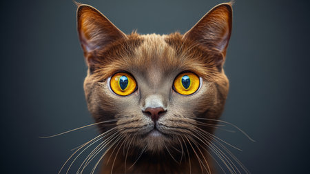 Captivating Domestic Cat with Brown Fur and Golden Eyes, Evoking Mystery and Charm in Isolation