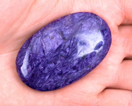 Top grade charoite palm stone from Sakha Republic, Siberia, Russia
