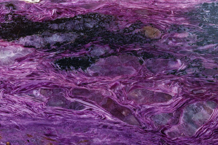 Texture charoits, unique mineral mined at the single deposit in the world. Each stone its own unique pattern