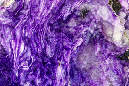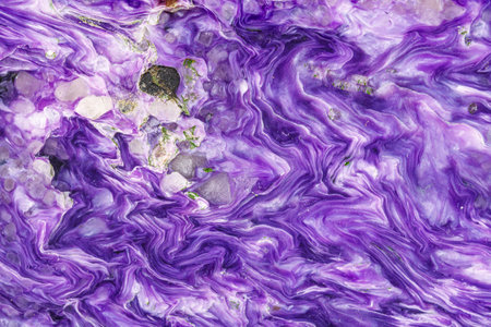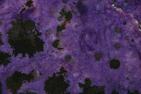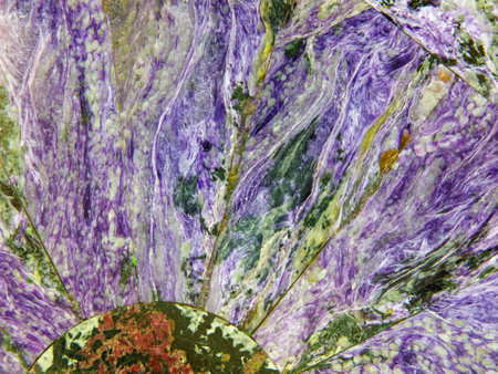 Macro detail purple green charoite, close-up of a textured semi-precious gemstone background.