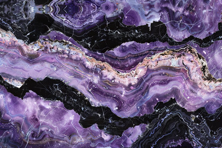 Macro shot of natural Amethyst gem or mineral texture background, organic stones patterns and colors. Abstract geological ornaments unique structures, AI generated image