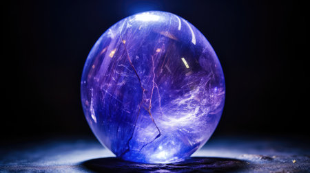 Purple crystal hand sculpture on dark background, artistic creation concept