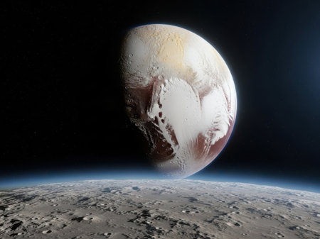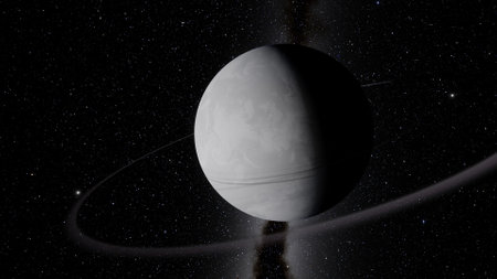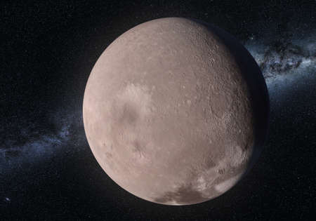 This image is a concept of the Makemake dwarf planet in a precise and scientific artwork design.This is a 3d rendering.