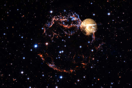 Planets and exoplanets of unexplored galaxies. Sci-Fi. New worlds to discover. Colonization and exploration of nebulae and galaxies. Probe. 3d render