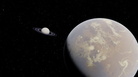 Planets with starry background, 3d rendering. Computer digital drawing.