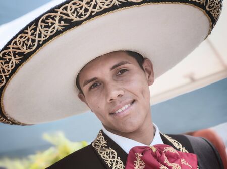 mexican man with sombrero posing outdoor