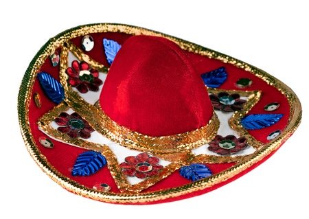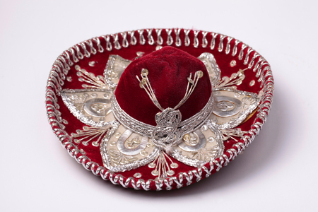 Red mexican sombrero with silver galloon on white background