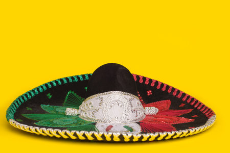 Tricolor mariachi hat on yellow background. Cinco de mayo festive background.