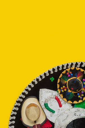 Mariachi hat on yellow background. Mexican independence concept. Cinco de mayo background.