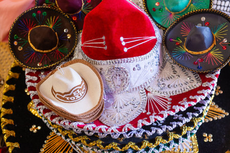 Colorful Traditional Display of Miniature Souvenir Sombrero Hats for Mexican Culture