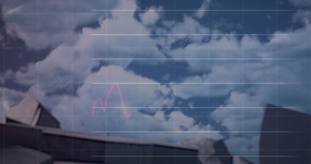 Image of digital screen with diagram over landscape. Landscape, nature and digital interface concept digitally generated image.