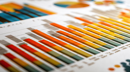 A close-up view of colorful charts and graphs representing business growth and analysis. Ideal for finance, marketing, and business presentations.