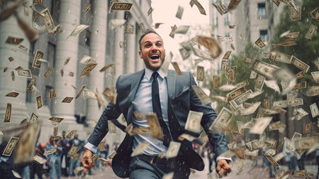 Euphoric Businessman in a Money Rush