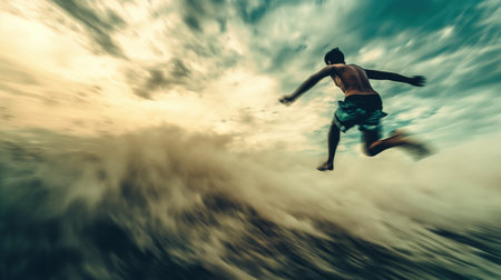 Leap of Freedom Man Jumping in Mid-Air