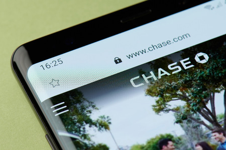 New york, USA - april 22, 2019: Chase internet bank interface on smartphone screen