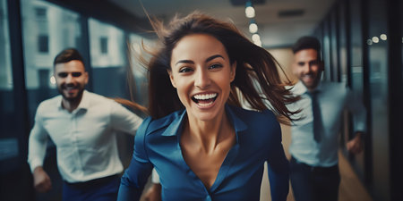 Entrepreneurs joyfully compete in office race. Concept Entrepreneurship, Competition, Office Race, Joyful Competition