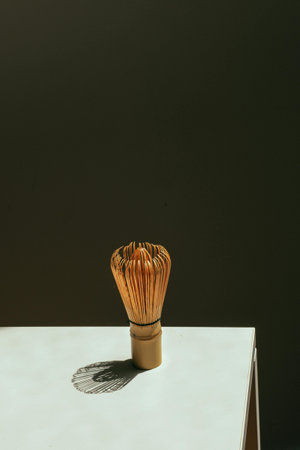 Bamboo whisk on the table in the studio, close-up