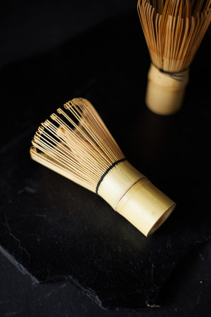 Close up Chasen , special bamboo matcha tea whisk, selective focus