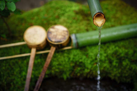 Japanese water purification, wash hand before enter the temple, bamboo ladle