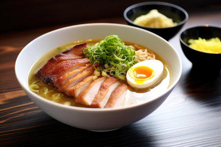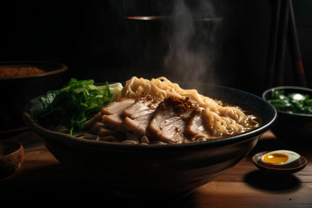 ramen on table japanese tonkotsu ramen, pork bone broth noodles