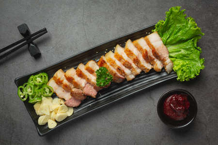 grilled pork served with sauce in korean style