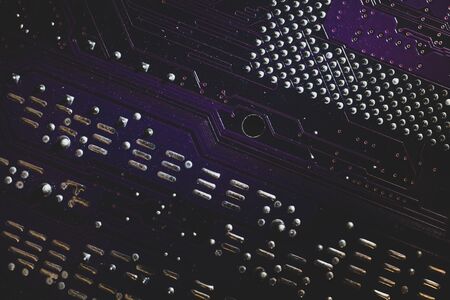 Electronic circuit board abstract background. computer hardware. motherboard close up. modern technologies. micro elements of computer with connections and traces. Intelligent technology