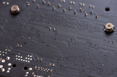 Circuit board abstract background. computer motherboard close up. modern technologies. micro elements of computer with connections and traces. Intelligent technology