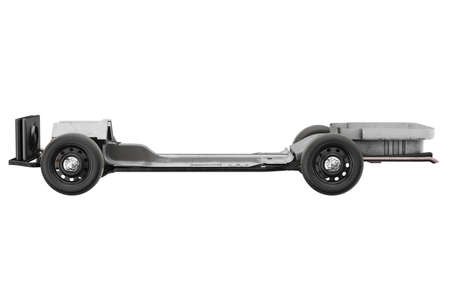 Chassis frame black dirt wheel, side view. 3D rendering