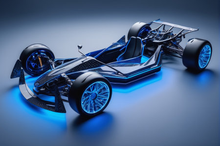 Futuristic Racing Car on Display with Neon Blue Accents. Generative AI.