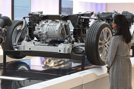 Munich, Germany - September 8: Audience at a car manufacturer's booth at the IAA (Internationale Auto Ausstellung - translation: international auto exhibition) trade fair in Munich on September 8, 2021