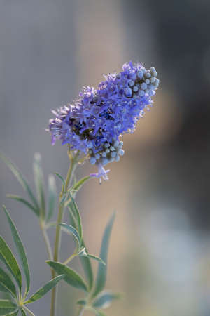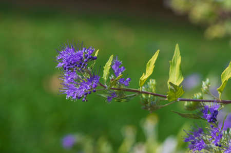 Caryopteris clandonensis bluebeard bright blue flowers in bloom, ornamental autumnal flowering plant with tall stem