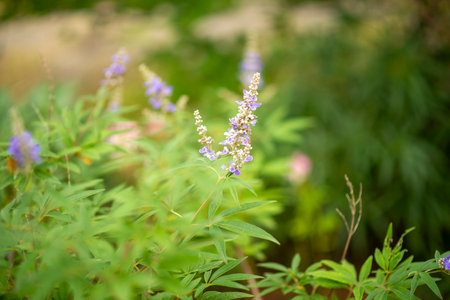 Chaste tree. Vitex plant with spikes of lavender butterfly-attracting flowers.