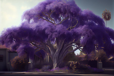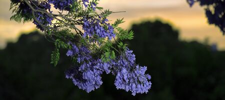 Beautiful blooming violet branches of Jacaranda. Brooklyn. Pretoria. Spring in South Africa. Artistic retouching. High quality illustration