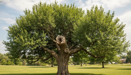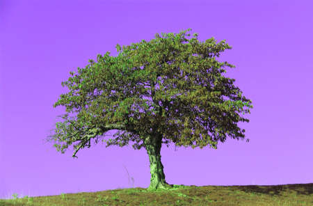 old big tree on color background with blue sky