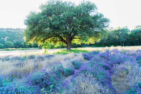 Lavender flowers field under tree, Provence France