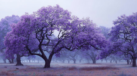 Jacaranda Tree in Full Bloom Against a Clear Blue Sky, a Beautiful Floral Canopy.