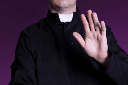 Priest man wearing catholic robe with cross. Religion person.