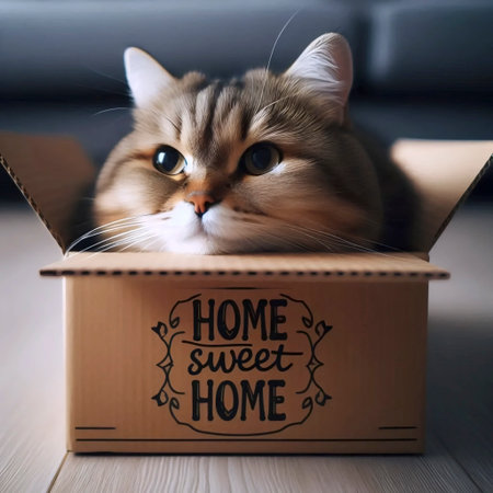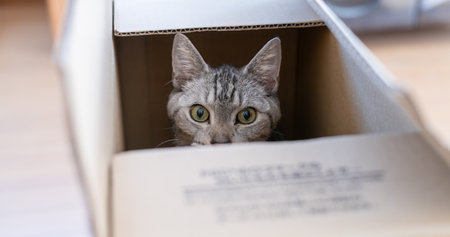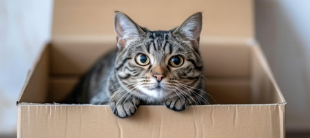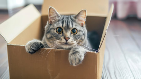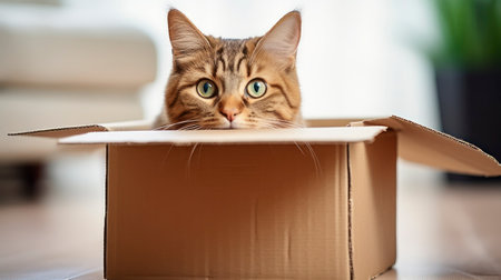 Feline Fun - Funny cat in cardboard box at home