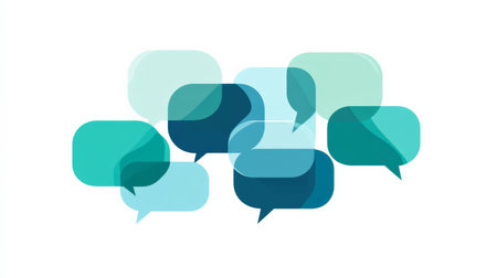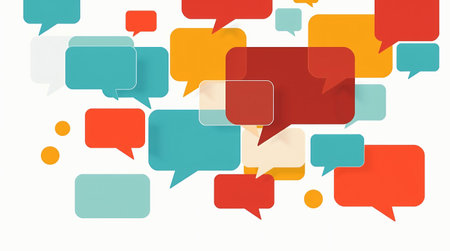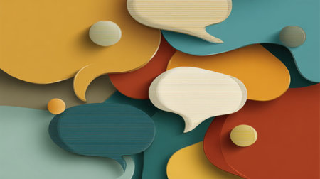 An abstract composition showcasing various colorful speech bubbles overlapping each other, creating a dynamic and engaging visual experience perfect for modern communication themes.